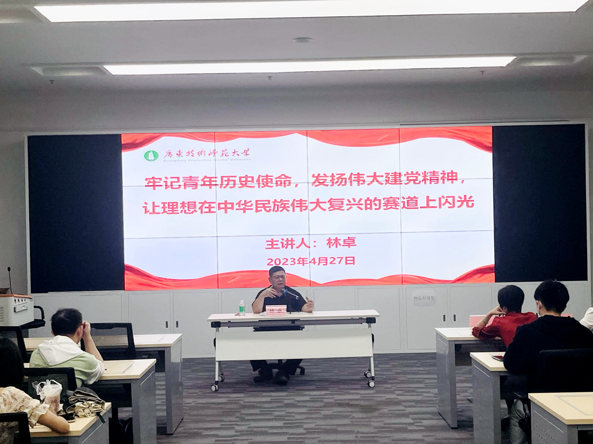 林卓以《牢记青年历史使命,发扬伟大建党精神,让理想在中华民族伟大复兴的赛道上闪光》为题,从“勇于担当的青春最美丽”“新时代青年的使命与担当”和“做有理想有本领有担当的时代新人”三个部分对这一主题进行了解读。林卓指出,新时代大学生是民族复兴伟大进程的见证者、参与者、建设者,应该勇于担当,不辜负党的期望、人民期待、民族重托,不辜负我们这个伟大时代。除了树立远大理想,还要以学习为首要任务,练就过硬本领,敢于面对风险挑战。他引导和勉励同学们要将个人理想融入中国特色社会主义伟大事业,树立远大志向,努力拼搏进取,求真问学,练真本领,以自己的专业知识,坚决维护国家安全和社会稳定,做有担当民族复兴大任的时代新人。