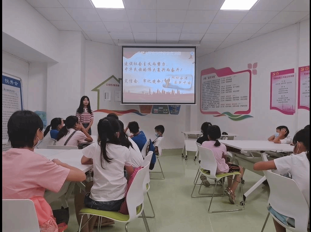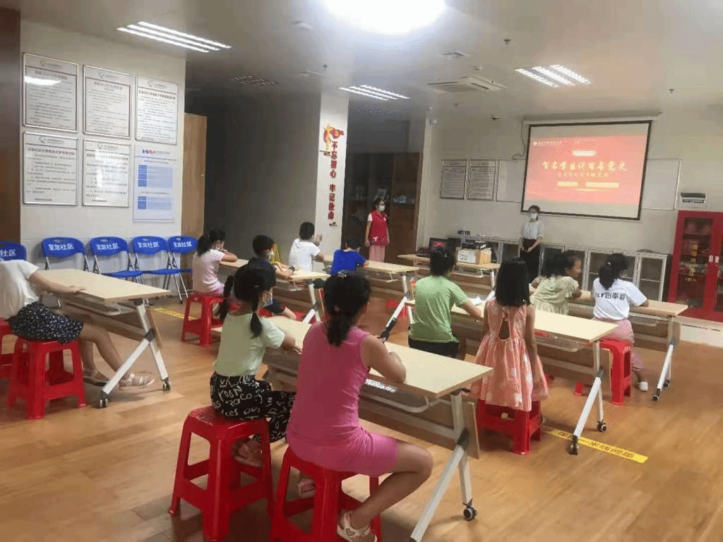 2021年7月30日,网安学院党史宣讲团成员20网安师1班杨扬来到深圳宝龙社区,给社区12位小朋友开展了 “传递党之信念火炬,坚守人民心之所向”主题社区的史宣讲活动。为了这次活动顺利开展,宣讲员做了精心的准备,与社区的党群工作室取得联系与合作,申请到了场地设备,得到了对方的大力的支持。