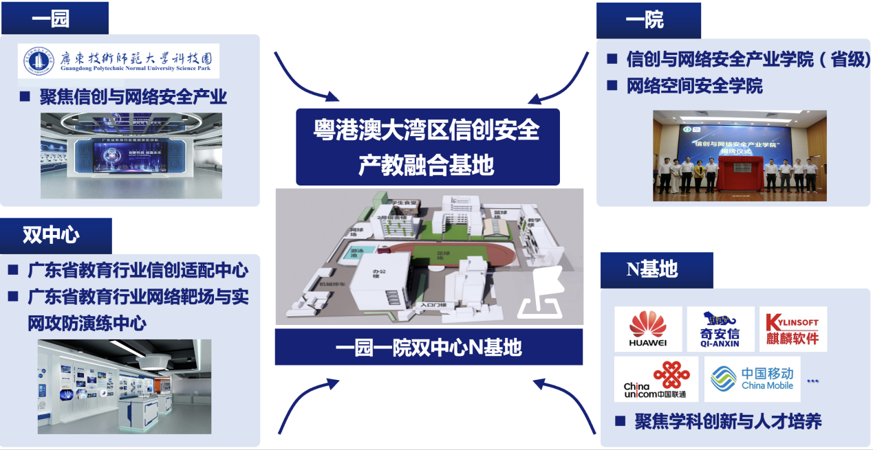 (3)融合信创:依托广东省教育行业信创适配中心,融合信创技术、国外先进技术和行业前沿技术,重构信创与网络安全课程内容,打造优质课程体系,配备一流“双师型”师资,培养信创与网络安全实战型、创新型卓越工程师。